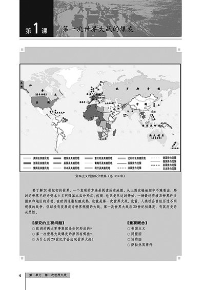 ▲第一次世界大战的内容被纳入选修教材。