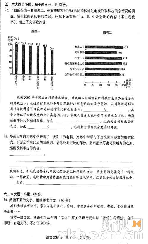 据介绍,这是语文卷中的第22题,也是语言应用部分的第一题。题目要求考生根据“有关机构对我国不同群体通过电视获取科技信息情况的调查”图表,补充文段中的空缺内容,要求不能出现数字,使上下文语意连贯。