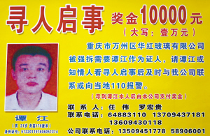 2007年12月25日凌晨,一幅70平方米的巨幅寻人启事广告悬挂在万州区最繁华的高笋塘广场地段。因为其“阵仗”大,加之悬赏1万元的酬金,该广告在网上被称为“史上最牛寻人启事”。而悬挂这幅广告的当事人就是李富华,被寻的人就是当初带人拆他厂房的谭某。
