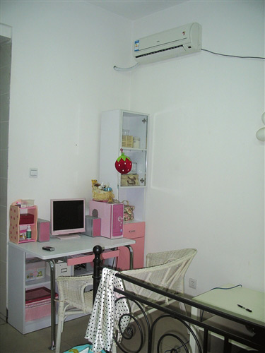 在其余标准寝室被誉为“夏日之宝”的吊扇,在这里也显得有些寒碜。这个房间专门安装了空调,关键的是:空调和冰箱都使用独立的、不断电插孔,在晚上宿舍楼其余寝室停电时,这个“套间”还可以继续用电。“生活很方便,一个星期水电费只有20元,不贵。”刘月说。