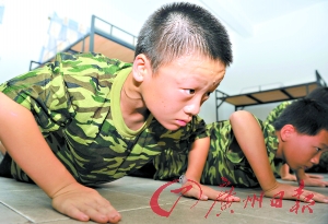 体能训练,孩子们汗流浃背,却也不喊一声累。记者卢政 摄
