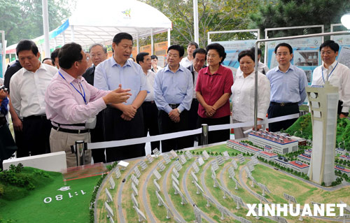 科技行动区展出了许多先进节能环保技术。一套装机容量为1兆瓦的塔式太阳能热发电系统,可满足三四千人的城镇用电。中央领导同志来到这个展台前,认真听取讲解,提出可以在条件适宜的地方推广这样的绿色能源。在利用厨房废油生产的生物柴油样品前,中央领导同志详细询问有关情况,希望通过科学技术变废为宝,而不要变废为害。习近平强调,今年是完成全国“十一五”节能减排约束性目标的关键一年,一定要增强节能降耗的紧迫感责任感,进一步落实节能减排工作责任制,努力实现节能减排指标。