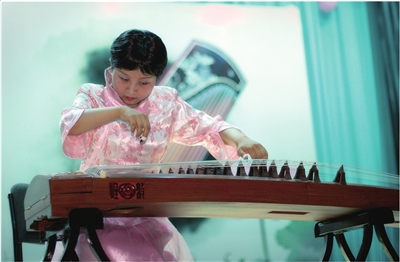 杨帆在舞台上用古筝演奏。本报实习记者刘浩宇 摄