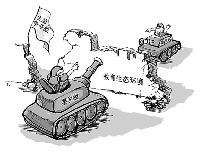 在“生源大战”中传来的打斗声,不仅从侧面反映了一些学校片面的市场意识,更反映出“应试教育”观念的根深蒂固。由此引发的恶性竞争,不仅使得“传道授业解惑”的师者形象荡然无存,使教育的生态环境遭到人为破坏,最终还将以牺牲学生的公平教育权利为代价,扰乱招生秩序,损害教育公平。