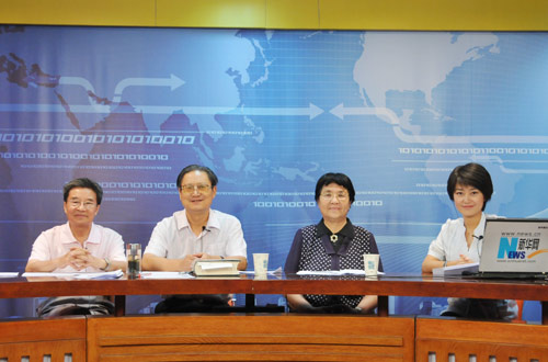 2009年8月21日,《通用规范汉字表》专家委员会副主任委员、北师大教授王宁,教育部研究员费锦昌,全国书协理事、《中国书法》杂志原主编周志高做客新华网,与广大网友谈“通用规范汉字表”为何对44个汉字进行字形调整。图为嘉宾做客新华网访谈直播间。新华网 李非摄