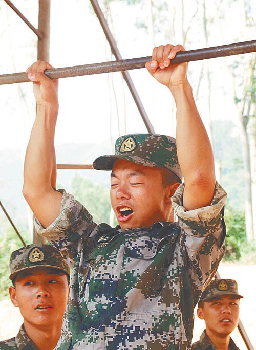 但挫折没有成为我前进的挡板。为了跨过这道坎儿,我付出双倍的汗水,虚心向队干部请教科学的训练方法,坚持早晚做200个俯卧撑和200个仰卧起坐,中午“吊杠”15分钟。就拿“吊杠”来说吧,它是训练臂力和意志力非常有效的方法之一,学过运动生理学的同学可能都知道,在“吊杠”过程中,双臂处于缺血状态,几分钟下来,就会又酸又麻,慢慢地失去知觉,那种难受的滋味无法用语言来表达,要把15分钟坚持下来,没有坚韧的毅力是不可能做到的。就是靠这种拼劲,让我以优异的成绩取得军事学学士学位,而且成为学员大队唯一荣立三等功的学员。