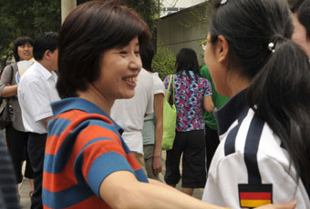 拥抱。新华网 前卫 摄