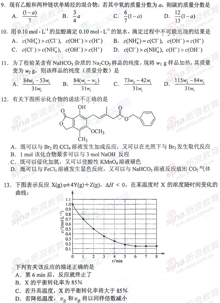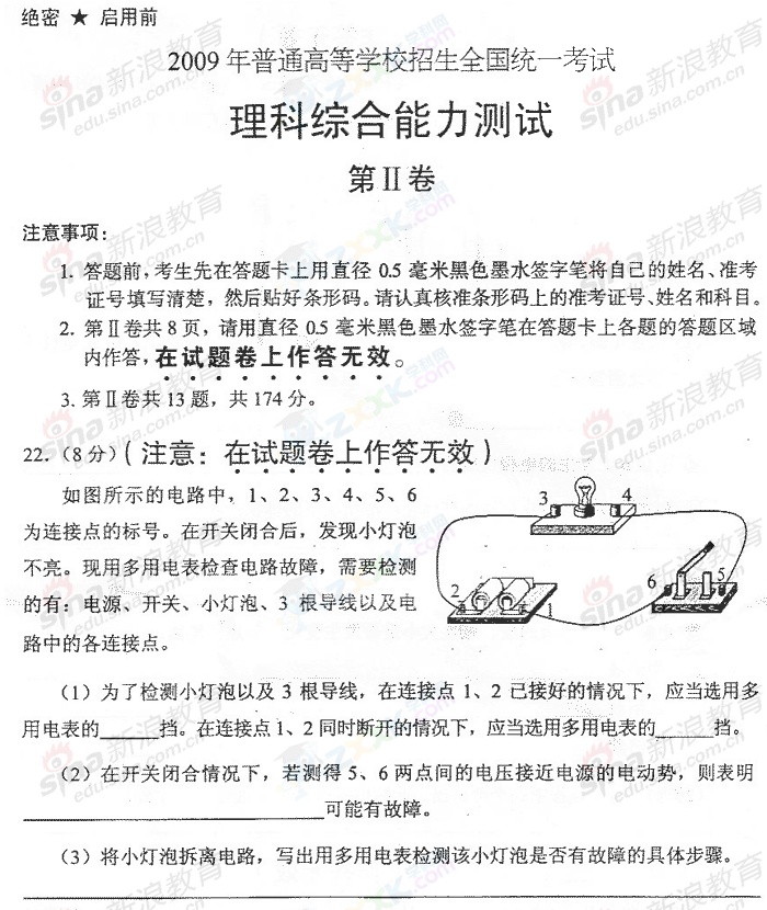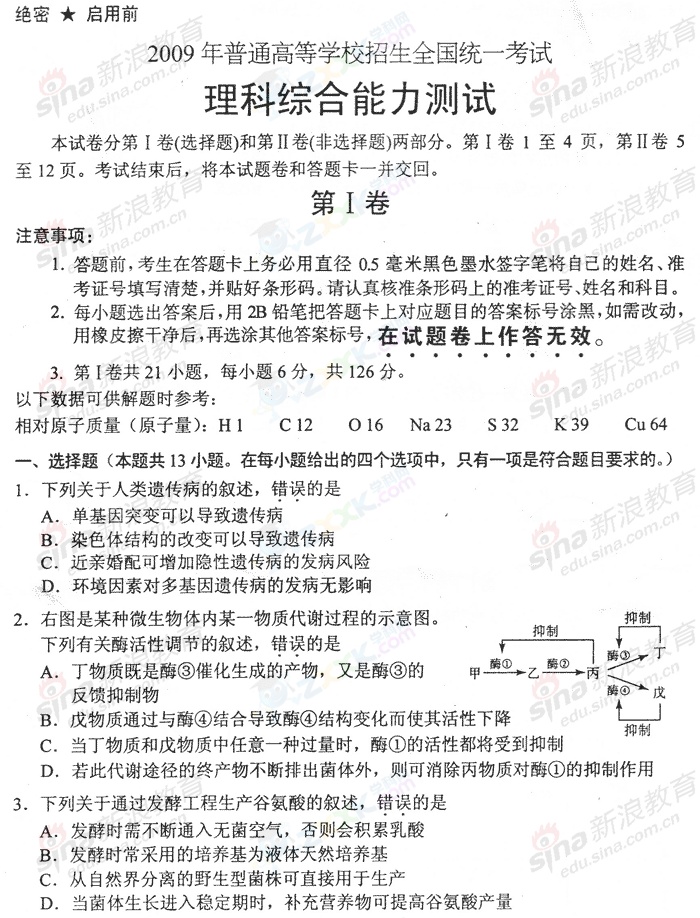2009年全国高考理综试题(全国I卷)