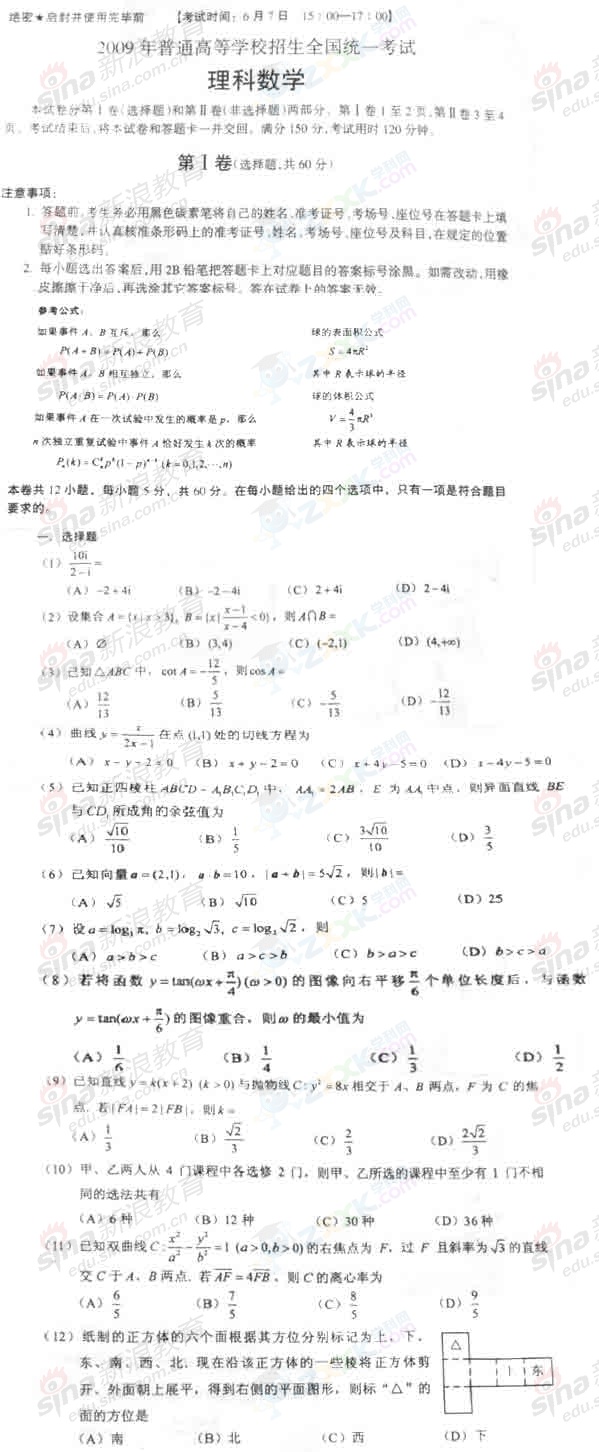 2009年全国高考数学理试题(全国Ⅱ卷)