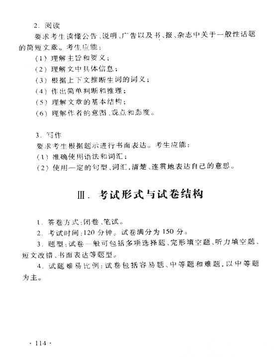 2012年普通高等学校招生全国统一考试大纲:英语