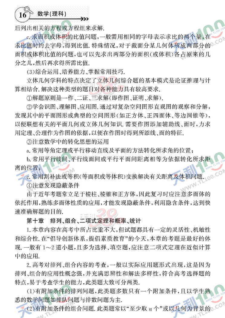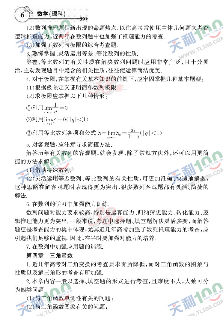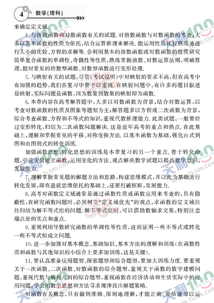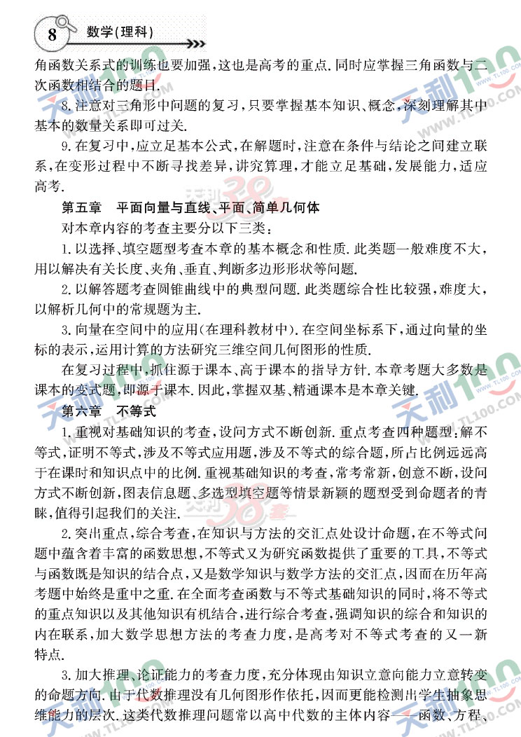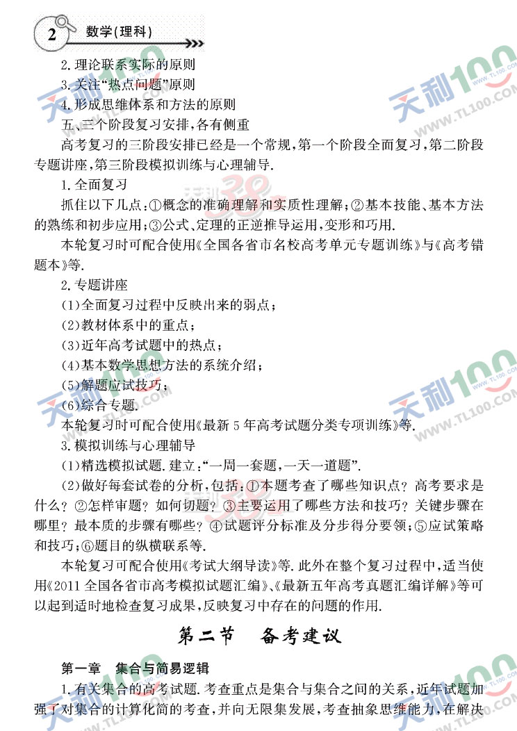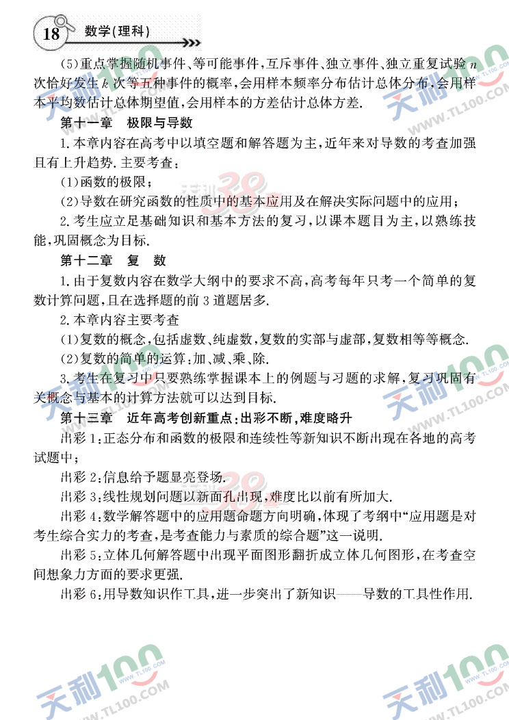 2011年高考复习大纲—大纲版(数学理)