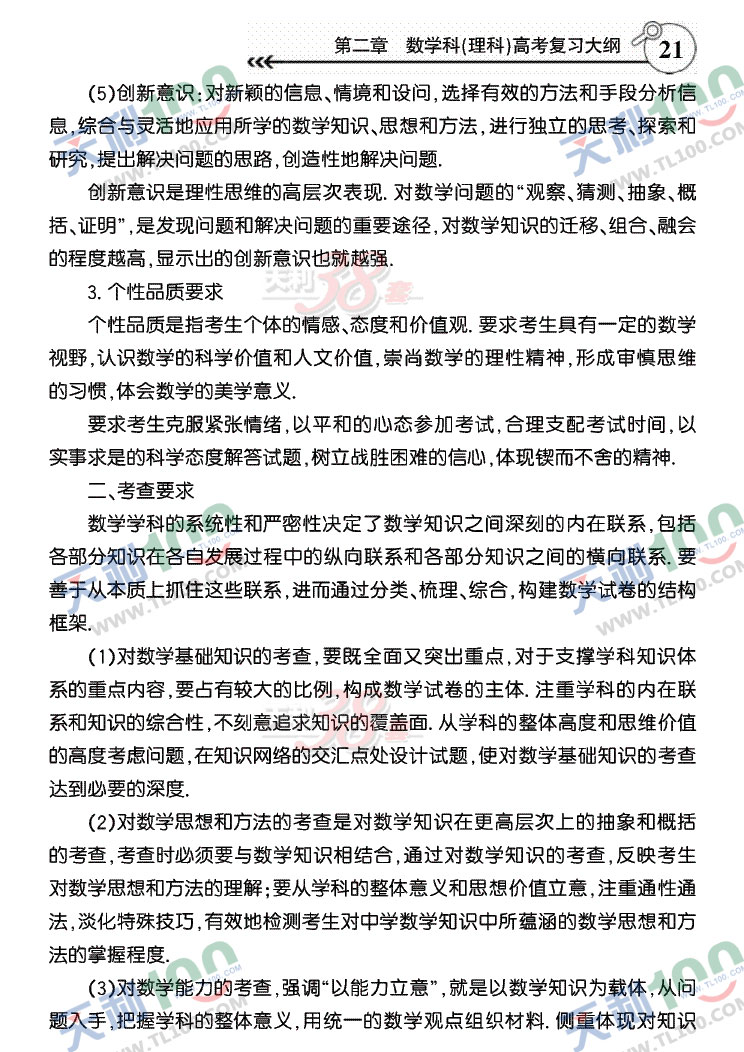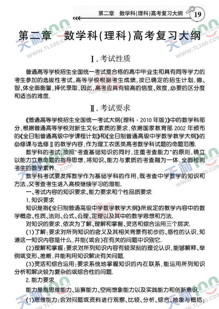 2011年全国统一高考考试大纲——数学(
