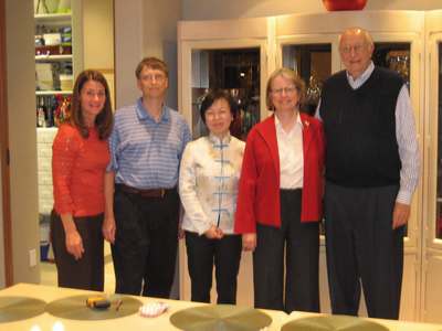 左边是盖茨夫妇,中间是陈慧,右边是盖茨的父亲和继母。(陈慧 供照)