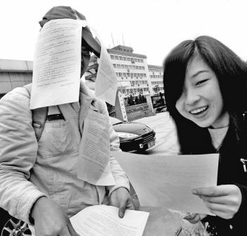 一到树人大学门口,记者就看到正在派发“自荐信”的李路,头顶两张A4纸、手拿一叠传单的他,看起来非常醒目。