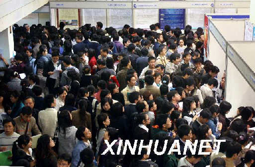 资料图片:2007年12月2日,“2007年上海高校应届毕业生专场招聘会”上人头攒动。11月18日至12月17日的上海“2007上海高校毕业生就业服务月”期间,上海市人才服务中心将举行20余场面向应届毕业生的现场招聘会。目前已经举行的10余场招聘会场场爆满。新华社记者 刘颖 摄