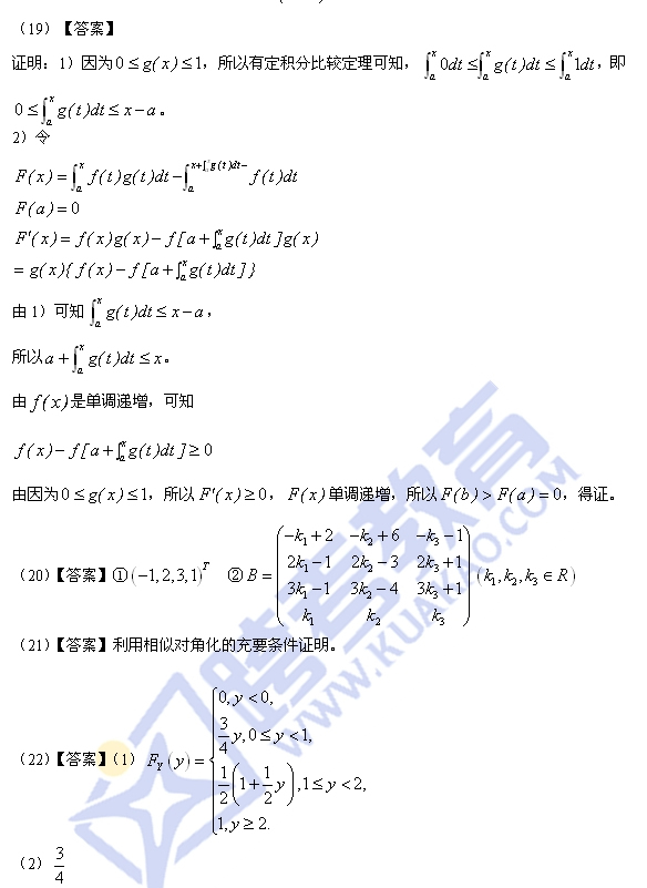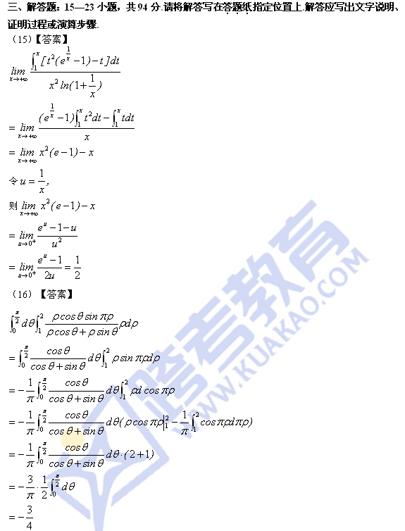 2014年全国硕士研究生招生考试1月4至6日举行。今年考研报名人数为172万,比2013年减少4万人。5日上午是业务课一科目的考试,,以下是中国教育在线整理了2014年考研数学三真题答案,仅供参考。