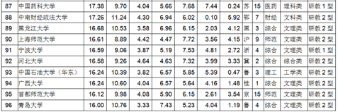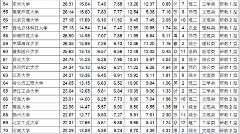 (200名之后的学校见分省排行榜)