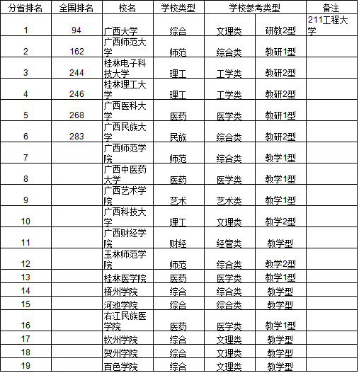 广西壮族自治区面积23.6万平方公里,2012年人口4862万人,人均GDP27952元。截止2009年,共评价19所普通本科大学,其中211工程大学1所。教师15573人,在校博士生582人,硕士生17987人,普通本科生185198人,留学生2703人。