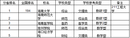 海南省面积3.4万平方公里,2012年人口887万人,人均GDP32377元。截止2009年,共评价5所普通本科大学,其中211工程大学1所。教师4064人,在校博士生110人,硕士生2482人,普通本科生55993人,留学生307人。