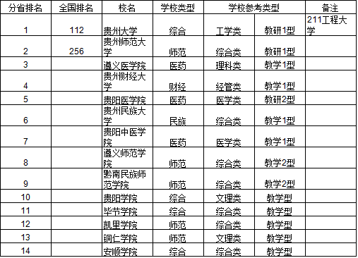 贵州省面积17.6万平方公里,2012年人口3484万人,人均GDP19710元。截止2009年,共评价14所普通本科大学,其中211工程大学1所。教师10638人,在校博士生206人,硕士生9794人,普通本科生118454人,留学生166人。