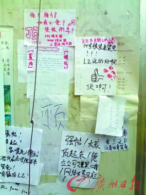 上海第二工业大学河东校区的一些学生,因不满校园网速极慢,连上QQ都困难,纷纷在寝室门口张贴出一份份类似网上灌水的“跟帖”,集体声讨学校网络公司(如图)。有同学把这种顶帖的盛况拍下来放到网上,引来不少网友的关注,有网友称平时大家在网上发牢骚,学校根本不知道,但通过这种现实跟帖的方式,学校就不得不关注。上海第二工业大学相关负责人回应称,目前事情已经解决。