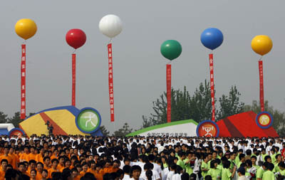 四月二十九日,“全国亿万青少年学生阳光体育运动”全面启动仪式在北京朝阳公园举行。图为活动现场。本报记者 鲍效农 摄