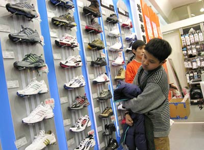 孩子的目光常常为名牌商品所吸引。本报记者 鲍效农 摄