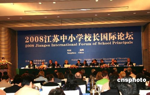 11月3日上午,由江苏省教育厅与扬州市政府共同主办的“第四届江苏省中小学校长国际论坛” 在江苏扬州召开。 本届论坛的主题是“学校领导力建设”, 旨在积极推进教育国际化战略的实施,进一步扩大教育的对外开放,拓宽基础教育领域的国际合作与交流。 中新社发 崔佳明 摄  中新网扬州11月3日电(记者 崔佳明)11月3日上午,由江苏省教育厅与扬州市政府共同主办的“第四届江苏省中小学校长国际论坛” 在江苏扬州召开。