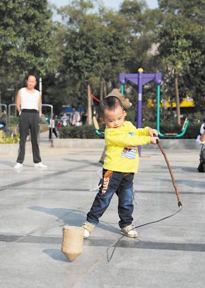 普通文章[图文]两岁男童轻松玩转三斤陀螺 市民称