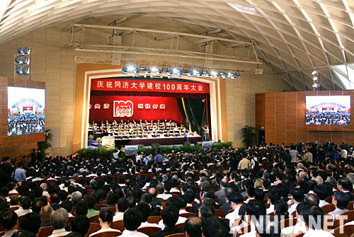 新华网上海5月20日电(记者厉正宏 刘丹)“同舟共济,自强不息”,享有盛誉的我国著名高等学府同济大学经历了整整一个世纪的沧桑和发展后,20日迎来了建校百年庆典。中共中央总书记、国家主席胡锦涛发来贺信,向全体师生员工和海内外校友表示热烈的祝贺。吴邦国、温家宝、贾庆林、曾庆红、黄菊、吴官正、李长春、罗干和乔石、朱镕基、李岚清也分别以不同形式对同济大学建校百年表示祝贺。