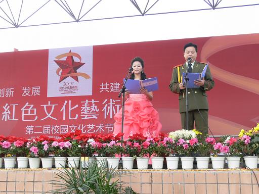 11月26日下午两点半,红色文化艺术节开幕式隆重举行。参加开幕式的嘉宾有:省军区、省教育厅、四川师范大学领导、新津县政府等各级领导,还有一批著名教育专家与著名艺术家,如表演艺术家彭登怀、省剧协主席廖全京、省音像出版社副社长傅刚、斯普软件公司董事长徐伟、省电大校长刁纯志、四十四中教务主任杨永红、新津移动公司负责人郑刚等,我院冉昌光院长、徐健全院长、常务副院长余天翔以及副院长张庭秀、院长助理陈怡、党总支书记王志雄、环境艺术系系主任古大治、平面艺术系系主任谢可新、两课教研室主任罗开富、体育教研室教授刘嗣伟等。