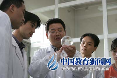 新疆农业大学博士生导师在“棉花分子育种实验室”里指导研究生实验。本报记者 鲍效农 摄