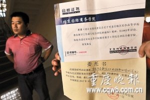 “不是搬的问题,你先给我们证明你的学校是不是真的?”家长们质问。刁文涛则拿出两张证明,一张是北京国际商务学院的办学资质证明,另一张是该校授权力天电脑培训学校为重庆办学点的委托书。记者留意到,这份委托书的有效期到2007年12月30日止,委托内容是“招生宣传、咨询、报名及教学辅导等相关事宜”。