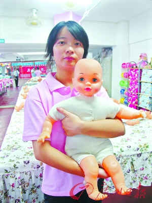 历史上深圳还没有专业的保姆培训学校,朱凤莲成为了第一个吃螃蟹者。办学对她来说是全新的体验。记者在学校里看到,上实操课的教室摆设十分新鲜,桌子上摆满了许多橡皮娃娃的教具,一张床上还躺着仿真的孕妇。