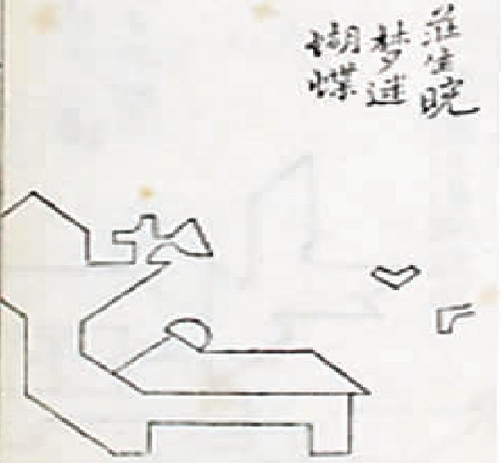 器具篇中,有笔架、玉如意、剪刀、瓢、花瓶、剑……每幅图上方,有几十字的简单描述,或解释器具产地、用途、质量,或由图形触发联想等。动物篇中,有鱼、猴子、兔、鹿、狮等。植物篇中,有荷叶、梨子、苹果等。为达到通俗易懂,作者还会用两三句耳熟能详的诗句配图。“出淤泥而不染,濯清涟而不妖”,这是荷花拼图的注解。梨子拼图时,所注文字是孔融让梨的小故事。图形篇,主要介绍几何知识,比如长方形、圆等几何图形的变化,比较复杂。
