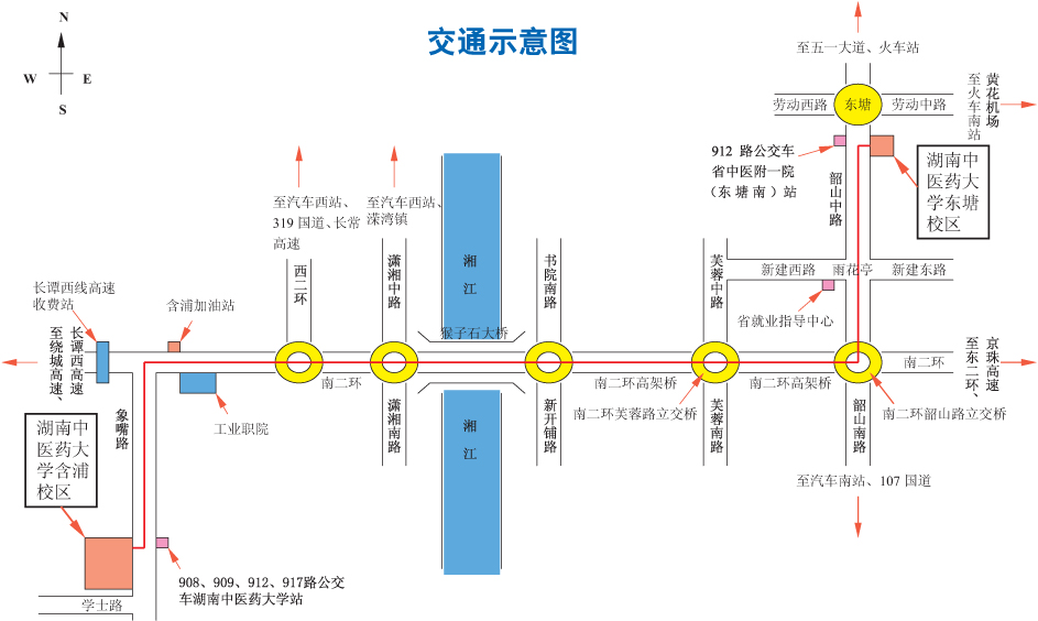 含浦校区公交线路:908、909、912、917路湖南中医药大学站。