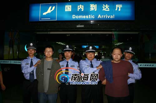 犯罪嫌疑人被押解回琼 (海口市公安局 供图)