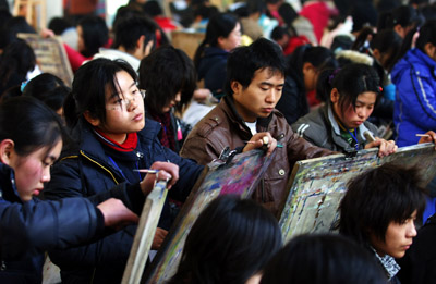 安徽省2008年普通高校美术专业招生考试在全省4个考点同时开考。据有关部门统计,今年该省美术专业报名人数超过3万人,创历史新高。