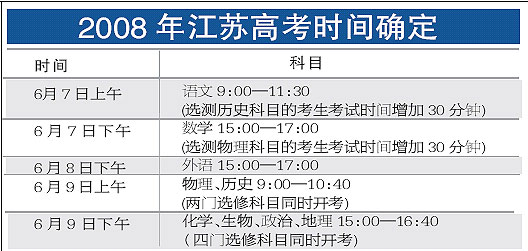 江苏省2008年普通高中学业水平测试必修科目考试将于4月8日、9日在全省349个考点同时举行,记者4月6日从江苏省考试院了解到,2008年共有57.5万考生报名参加本次考试。目前,各地的各项考试准备工作已基本就绪。