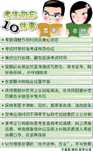 图表:高考在即 考生勿忘10件事