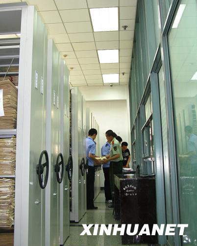 这是设置在河北省考试院内的高考网上评卷扫描现场的机要室。经过专门培训的扫描工作人员在武警陪同下,经过严格登记,从机要室提取答题卡并送入扫描现场(6月12日摄)。新华社记者 吴晶 摄