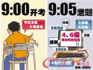 小林是一名大学生,去年曾参加过六级考试,当时考后他在网络论坛里发现,和这次一样,正确的答案在开考同时已现身网络。小林表示,泄题的事情年年发生,几乎每次考后他都能在网上找到充分证据,“简直成了‘四六级并发症’,套用一句广告词,就是‘无泄题,不四级’”。