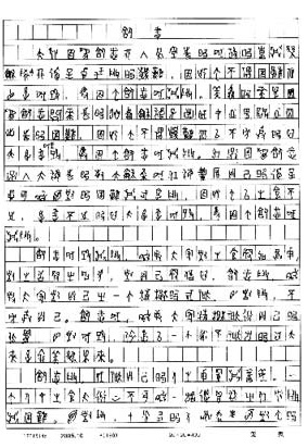 小黄高考后摹写的古文字作文(第一页) 普老师提供