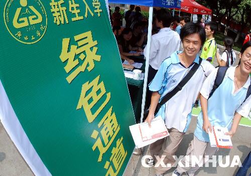 资料图片:柳州广西工学院的贫困大学新生通过“绿色通道”办理缓交学费手续