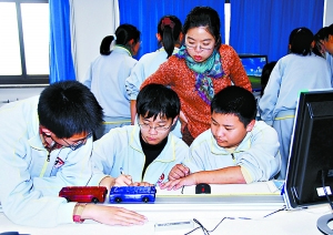 二中的信息技术、通用技术、体育与健康、音乐与美术五个学科,都实施“走班制”选课教学。比如通用技术课程,高一年级开设36学时,高二年级开设18学时,另外18学时开设校本课程专题,如《陶艺》、《家政与生活》、《绣艺》、《汽车驾驶与保养》、《现代农业技术之农艺园区》、《简易机器人制作》等,颇具吸引力。