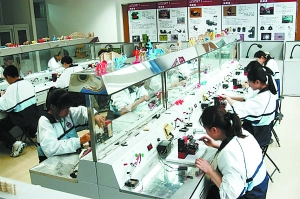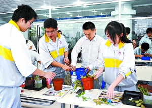 更让记者感叹的,是二中强化了实验课,必修课上的实验学生必做,不必说;物理、化学、生物、电子4个区域开放实验室,均由学生自选实验上自制课。最突出的是生物实验室,虽然生物高考只有80分,所占总分比例最低,但二中的生物实验室最多。除了两个常规实验室,还有微生物、组培、分子生物、生物技术(无土栽培和有土栽培)5个实验室。钮小桦校长讲得很清楚:我国的生物教学课时较比发达国家少得多。我们教在今天,要想到明天。其实,今天欧美大学的生物领域专业招生的数量和质量,都高于我国;社会对这一领域的人才需求,包括医疗保障、公共卫生、环境保护、社会发展规划等,都有很大空间。