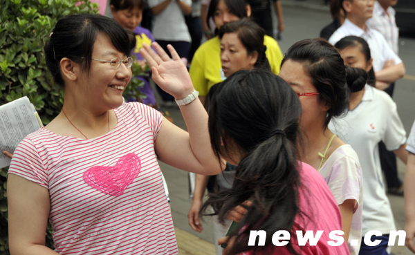 资料图片:2009年6月7日,在北京市京源学校考点参加高考的考生与家长道别。当天,全国高考开始。新华网 前卫 摄