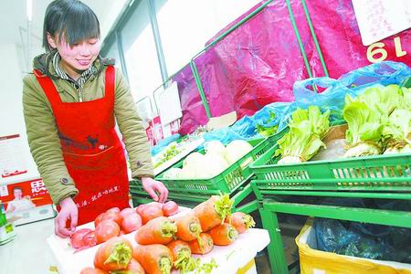 昨日下午,在郑州市圣菲城旁的“咱地里”超市内,仍是学生打扮的姜茵和雇的几名工人一起忙着理货、接待顾客,一点没有老板的架势。