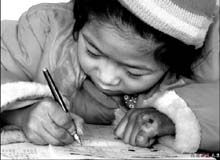 当我问到小妹妹的手为什么冻成这样时,那灿烂的笑颜便消失了,我心里隐隐的痛。她的父母一定太忙了,过年了,竟没照顾好自己的宝贝。
