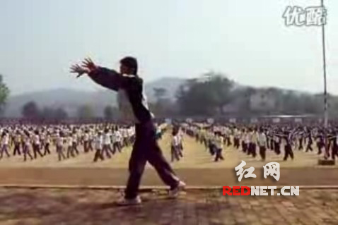 “里面很多动作比较搞笑,尤其是踢腿运动中模仿足球的动作,为了锻炼身体,本人尝试过学习整套动作,做完全身起鸡皮疙瘩,汗毛直竖,不知道该校的孩子们怎么能天天做……”10日,网友“湘水悠悠”在红网论坛发表题为《超雷人的湖南宁乡四中自编广播体操》帖子,一段宁乡四中学生在老师带领下做学校自编广播体操的视频让网友大呼雷人,并戏称为“最雷人广播操”。